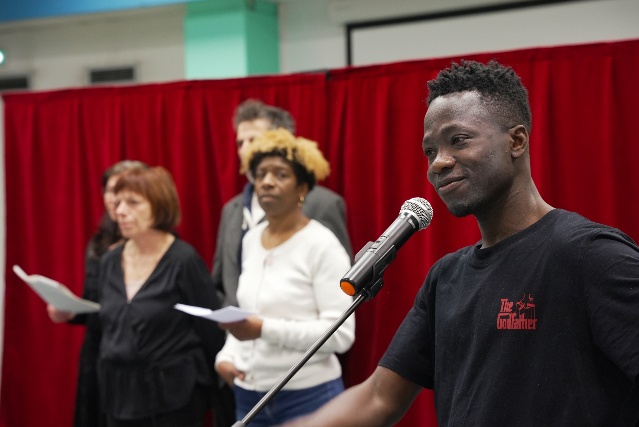 Un texte choisi par Roger qui fait écho avec sa vie. De la fuite de la Côte d’Ivoire à son arrivée en France à